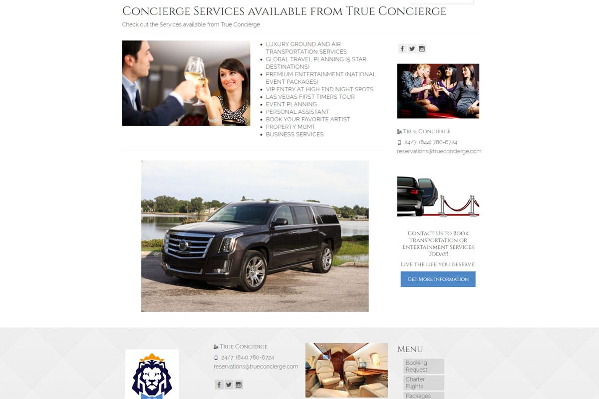 True Concierge is a nationally available premium, luxury transportation company based in Memphis, Tennessee with options like Black Car Services, private jet charter flights, party buses, limos, and more. This company is looking to gain an increase in website traffic, ROI, and brand awareness, as well as authority within the search engines.