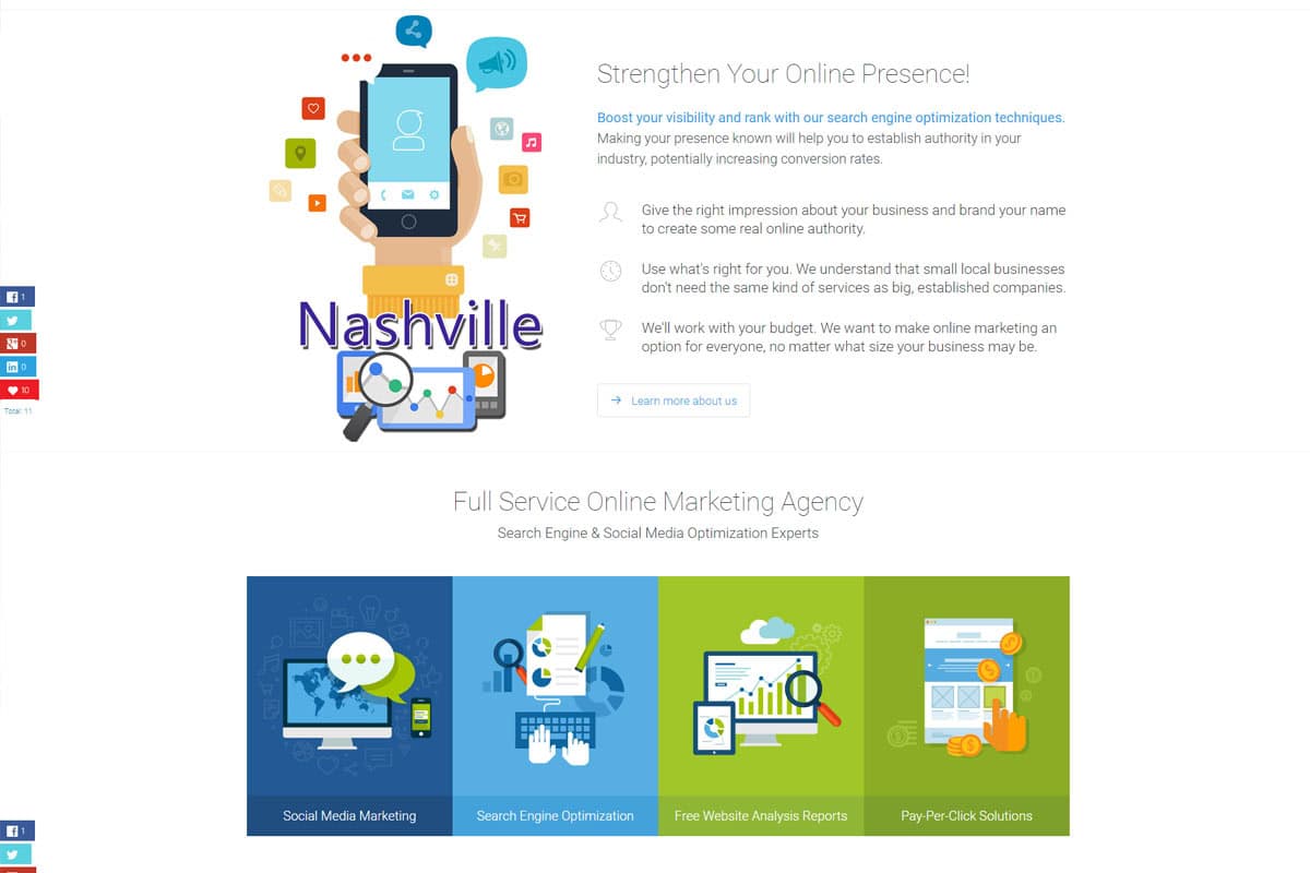 SEONOS is one of Nashville’s leading marketing firms working with local’s business to increase their website’s value within popular search engines. SEONOS provides Website Design, Search Engine Optimization, Pay Per Click, and many other online marketing options.